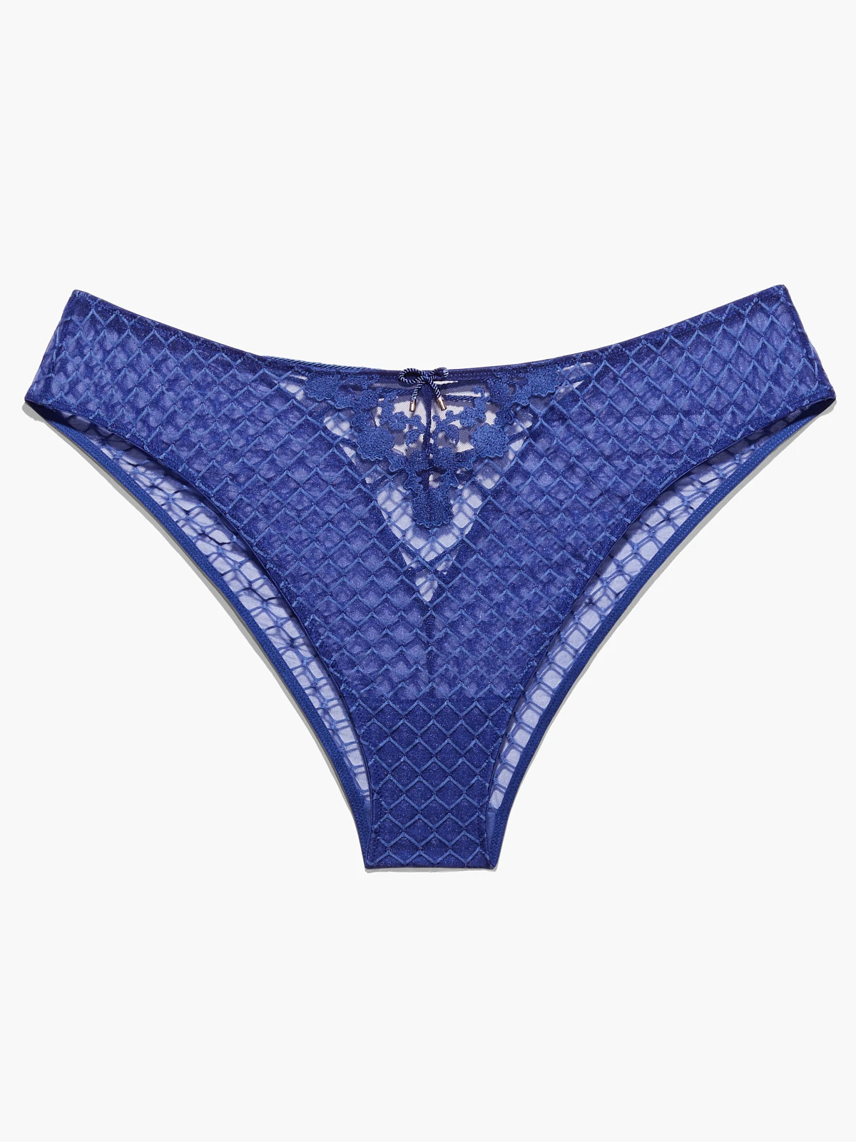 Our Baroque Bondage Open-Back Brazilian completes your boudoir look. This sheer Brazilian silhouette knicker mixes fishnet mesh and delicate embroidery. Featuring soft rope lacing detail at back for an edgy look.