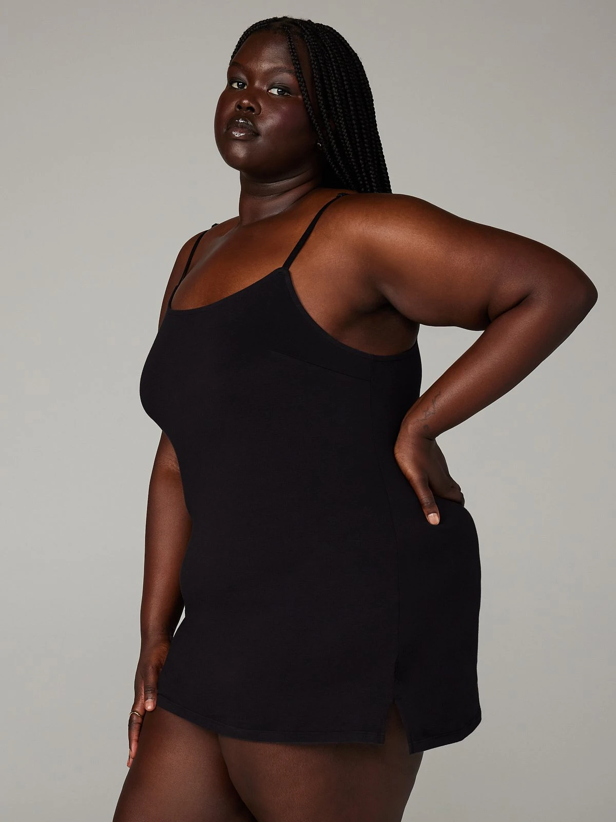 Our Cotton Essentials Slip features a cotton jersey body, scoop neckline, and adjustable spaghetti straps.