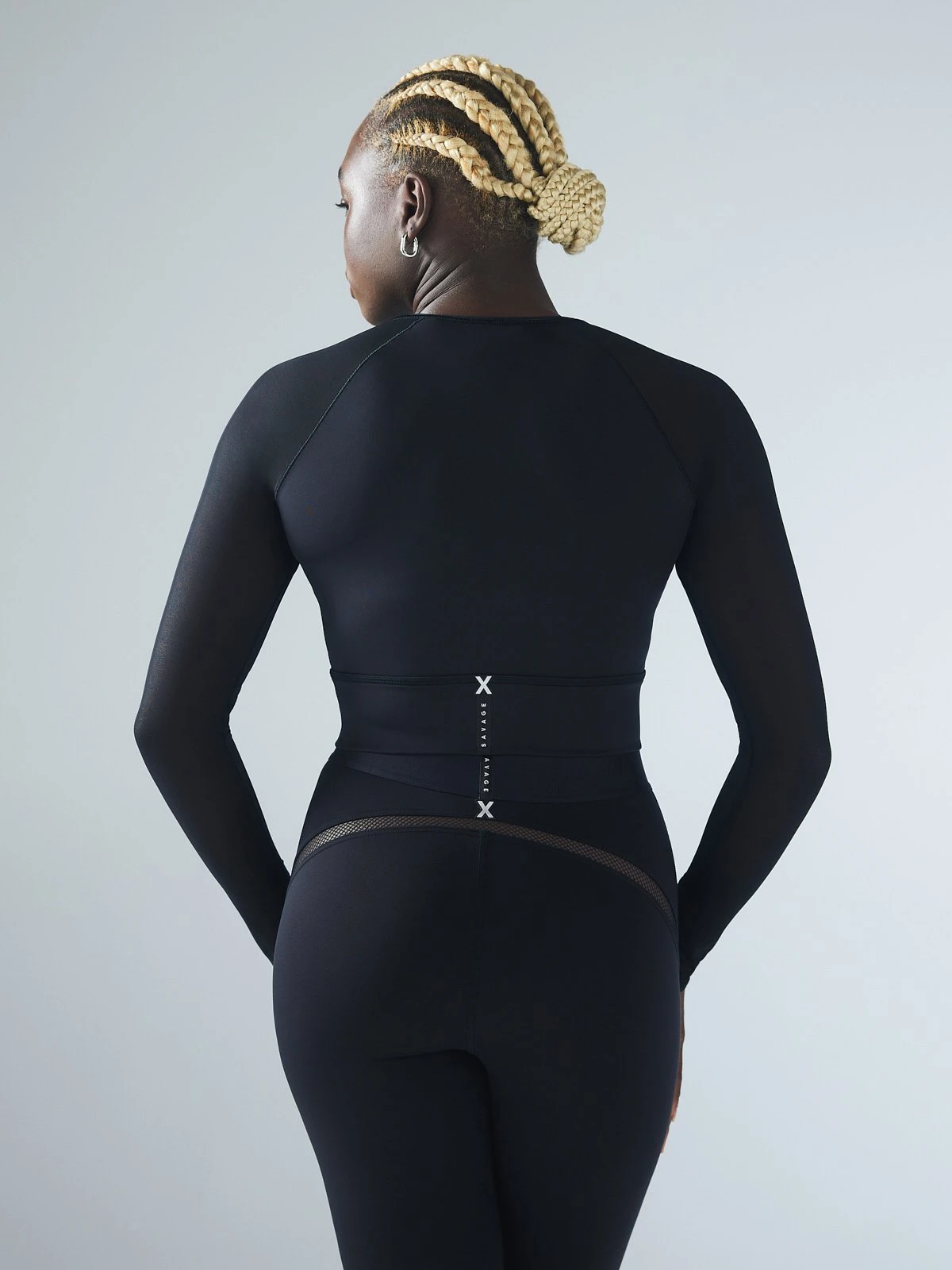 - Power-mesh raglan sleeves