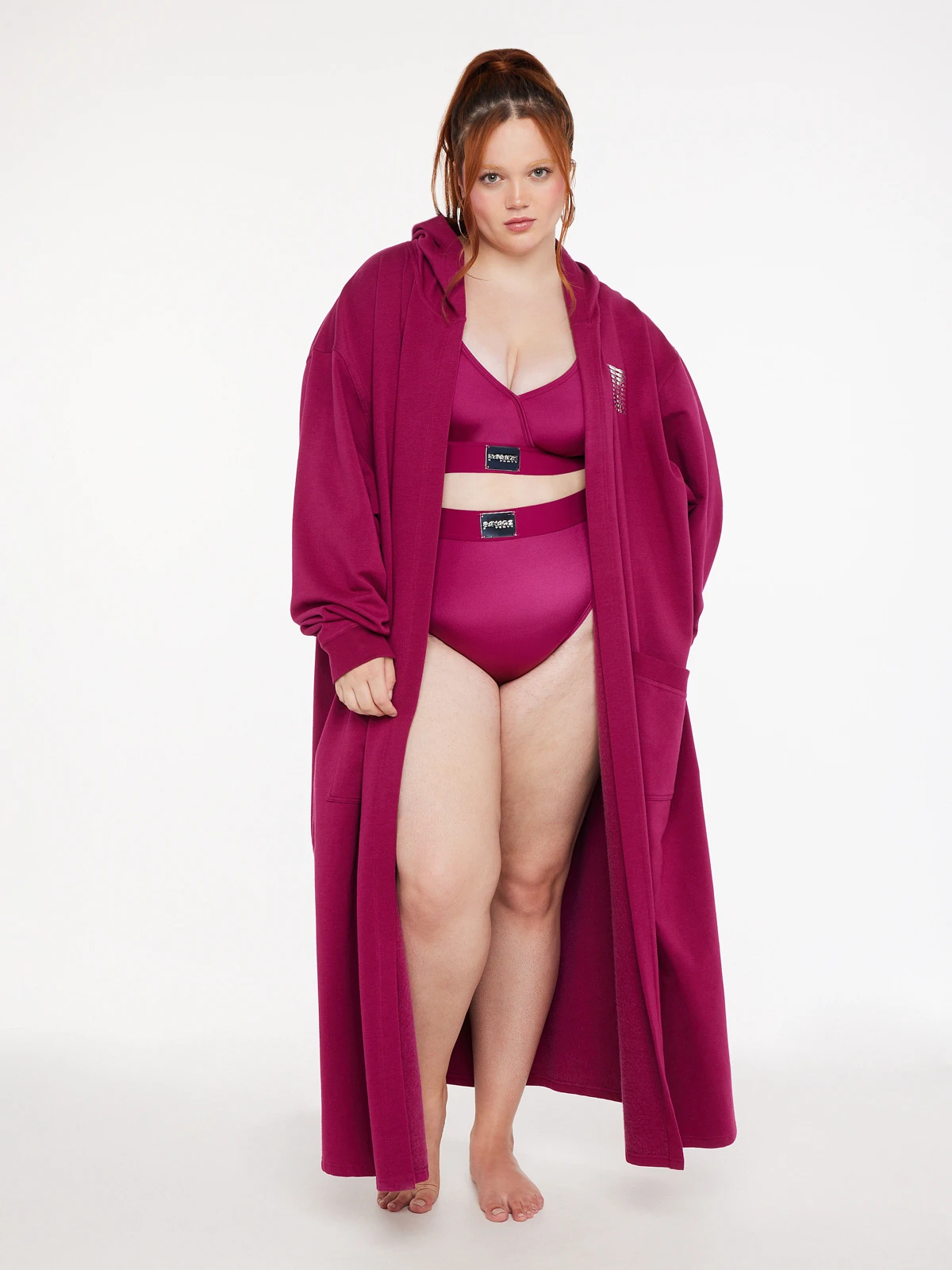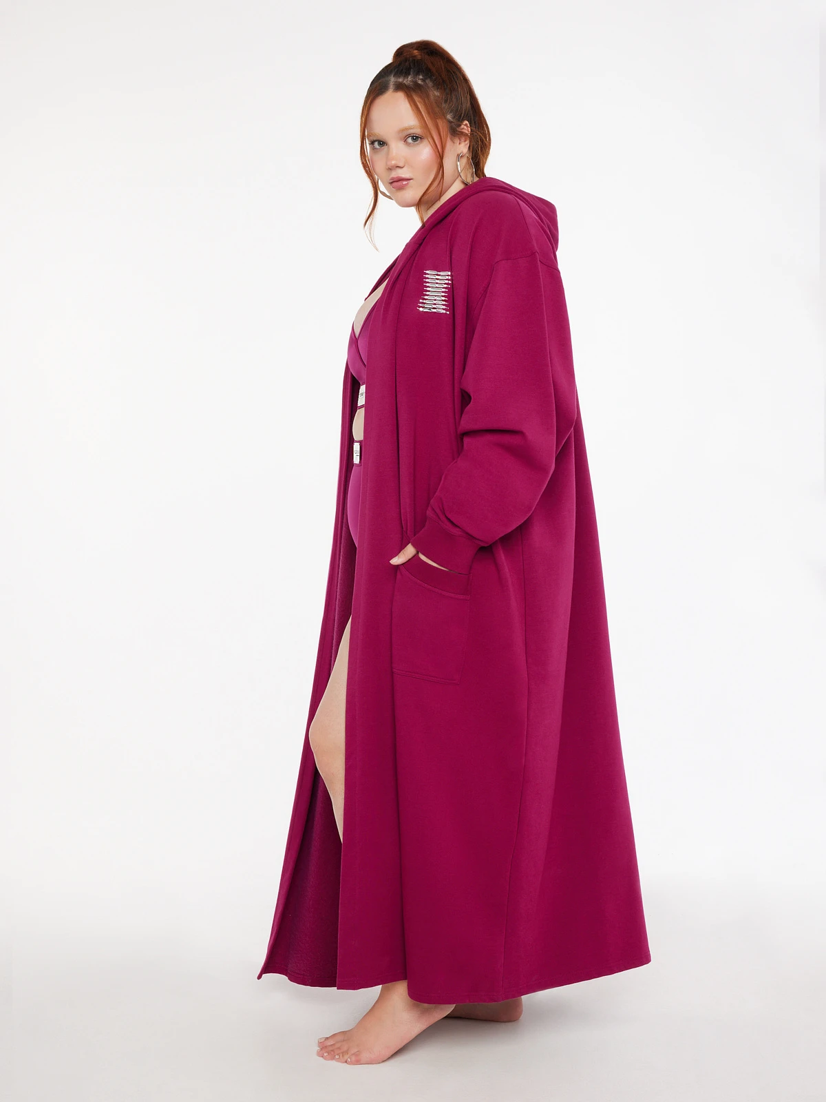 This Forever Savage Long Robe is made of ultra-soft fleece and features a cozy, oversized hood, 3D foil graphic details, front pockets, and a removable belt.