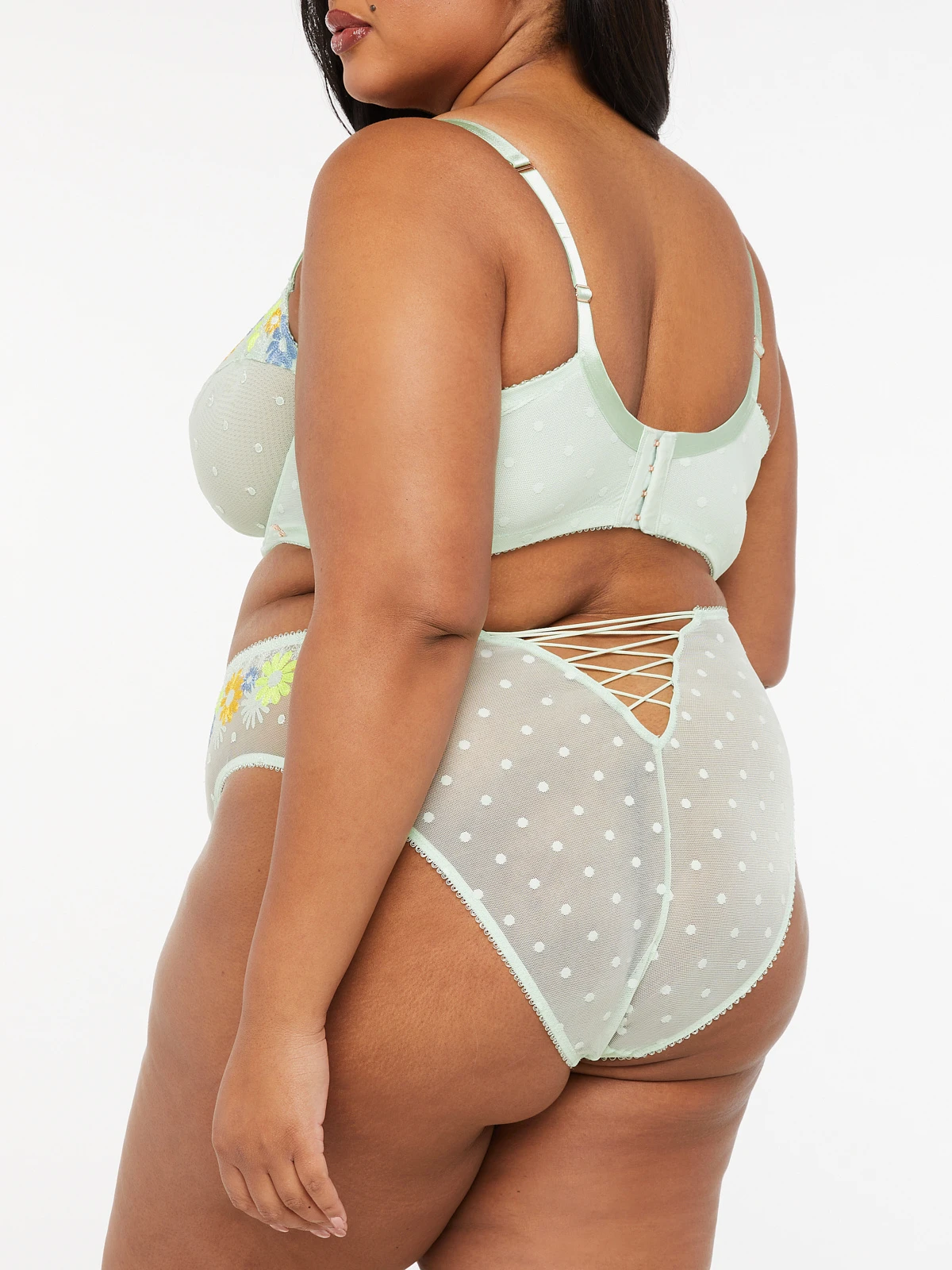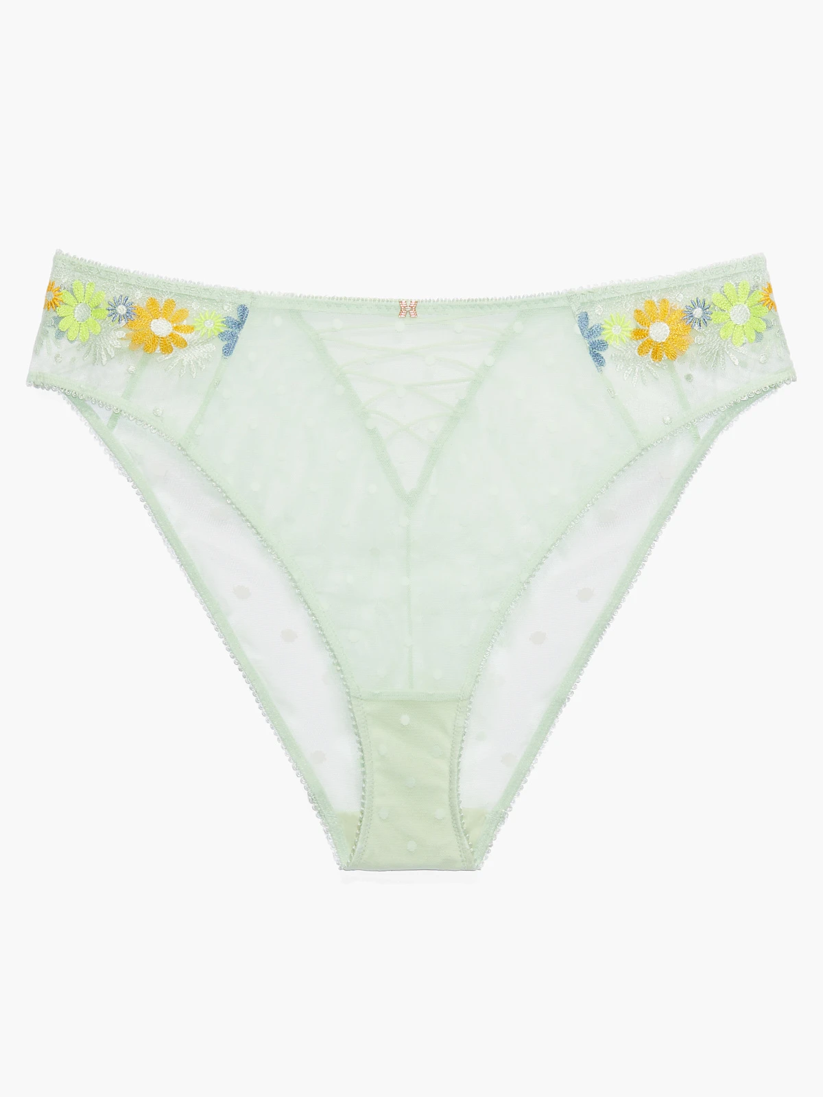 The mood is mod. Our Free Spirit Floral Embroidered High Leg Bikini is made from a sheer mesh fabric and features a colourful, retro embroidery with custom Savage X trim.