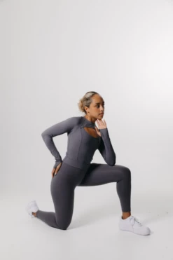 Tala SCULPT SEAMLESS WRAP LONG SLEEVE CROP TOP – CHARCOAL MARL