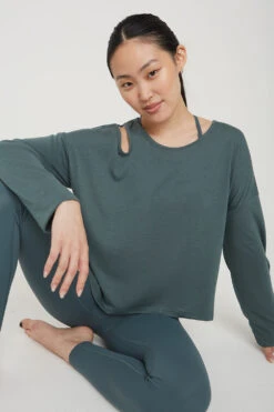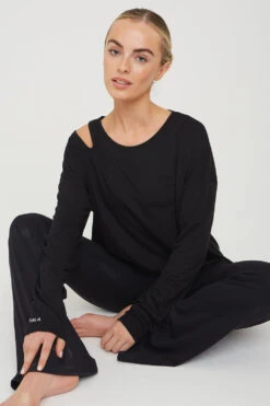 Tala AIRLAYER CUT OUT SHOULDER LONG SLEEVE TOP – SHADOW BLACK