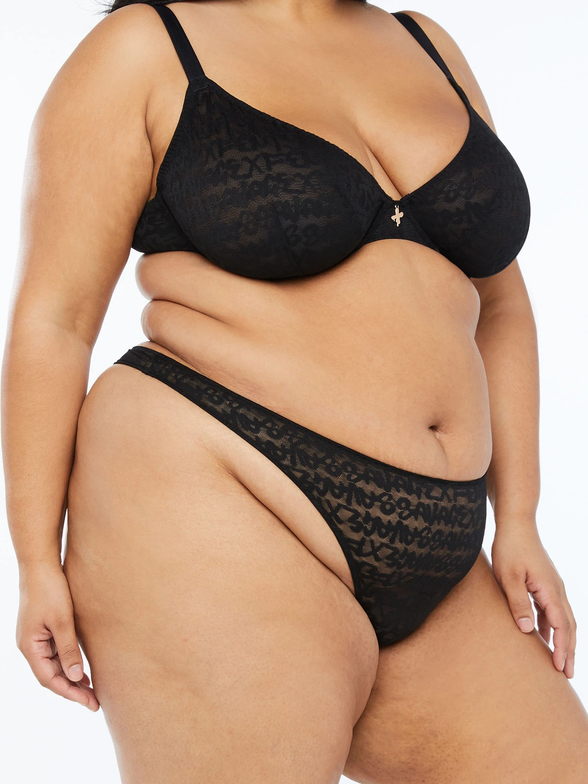 Our Tagged by Savage High-Leg Thong is mid-rise and adorned by a tagged Savage X logo.