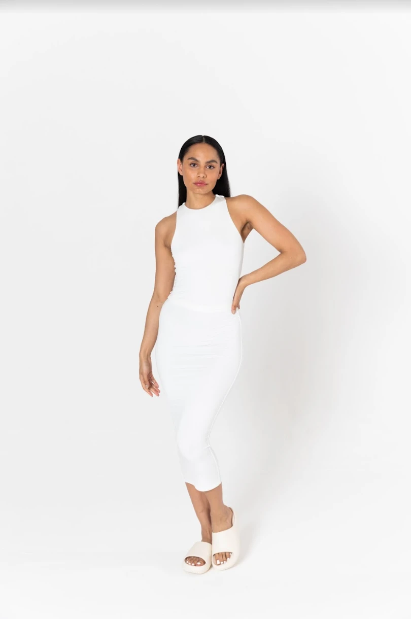 - Flattering high neck design with racerback detail