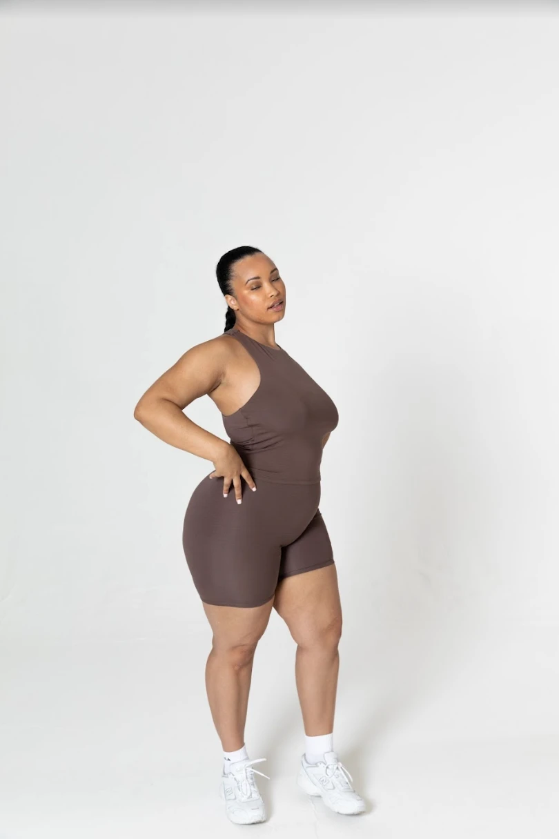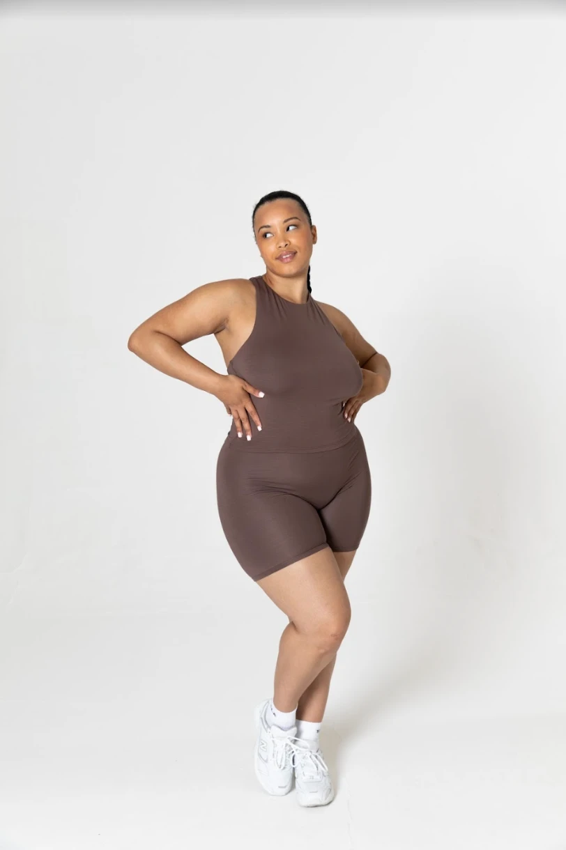- Flattering high neck design with racerback detail