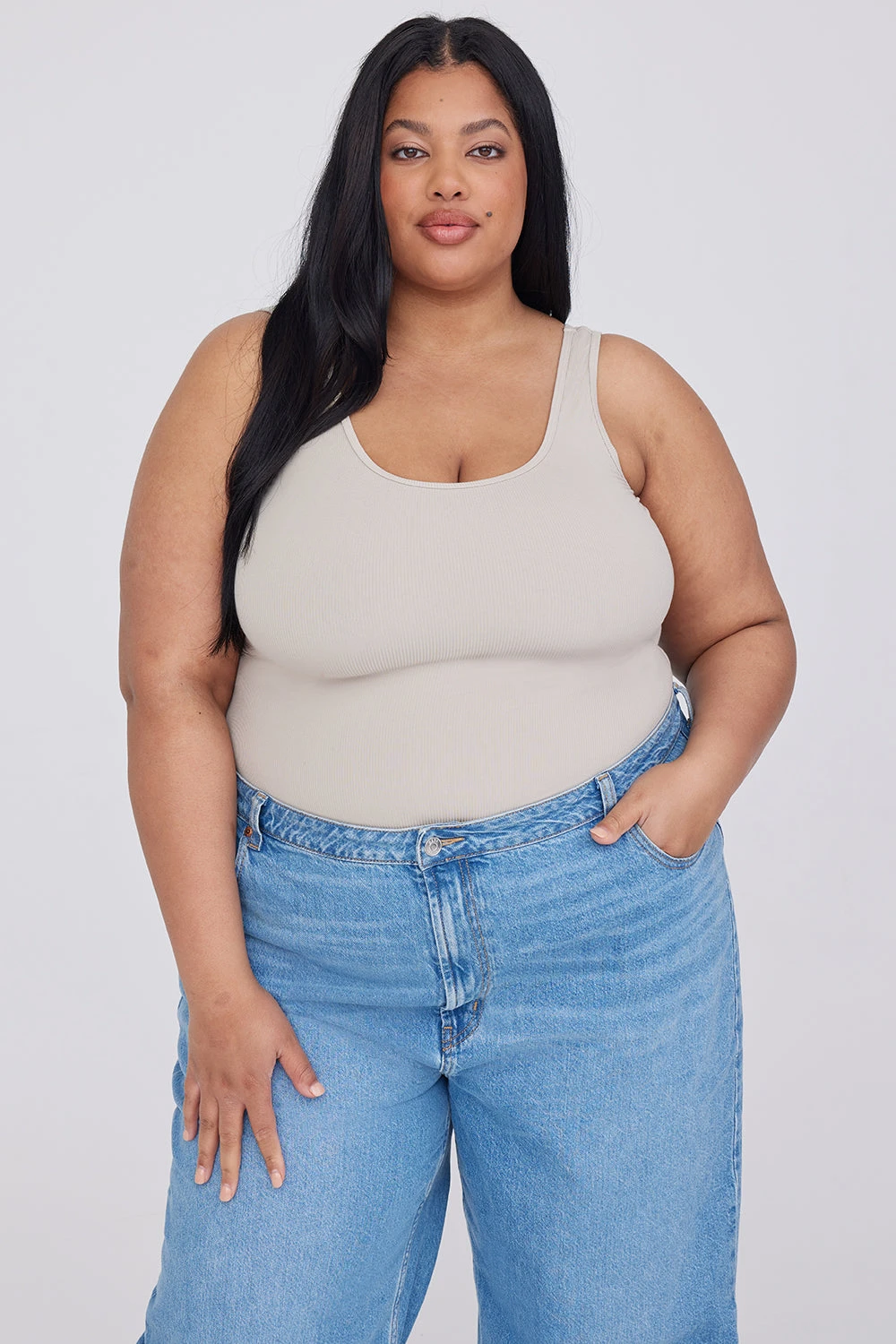 Your essential bodysuit has arrived. Crafted from double layer ribbed fabric, you’ll love the way it feels (even without a bra!) while the incredibly soft, double layer means you’re gently hugged with zero risk of see through. With a beautiful scoop neck front and back, the possibilities are endless – from summer styling to your go-to work layer, this is a basic that is far from basic.