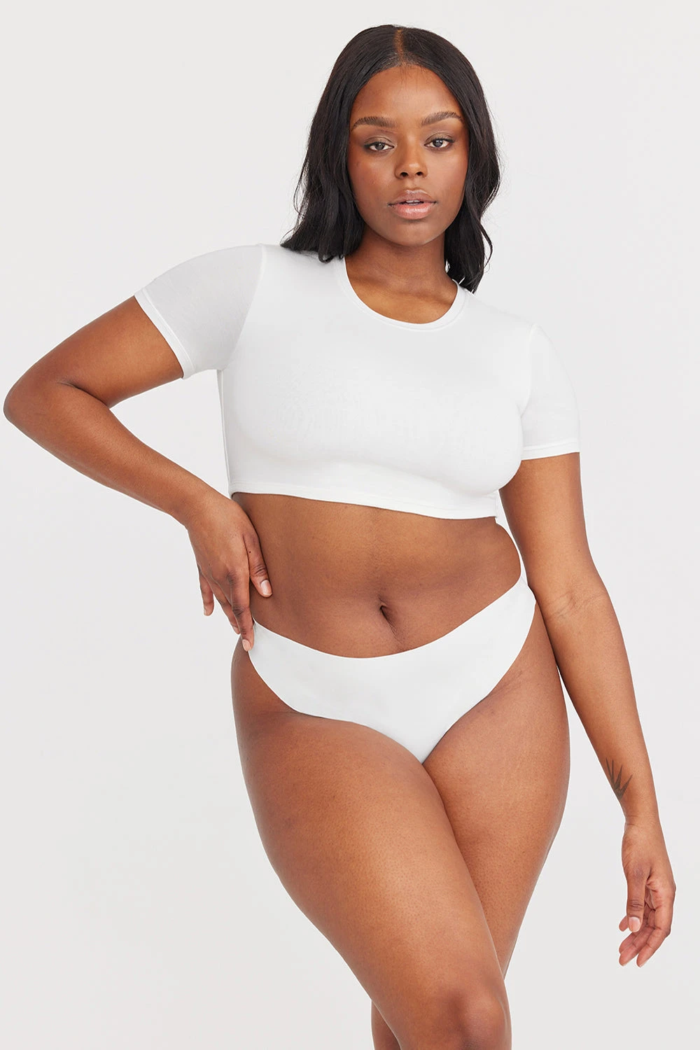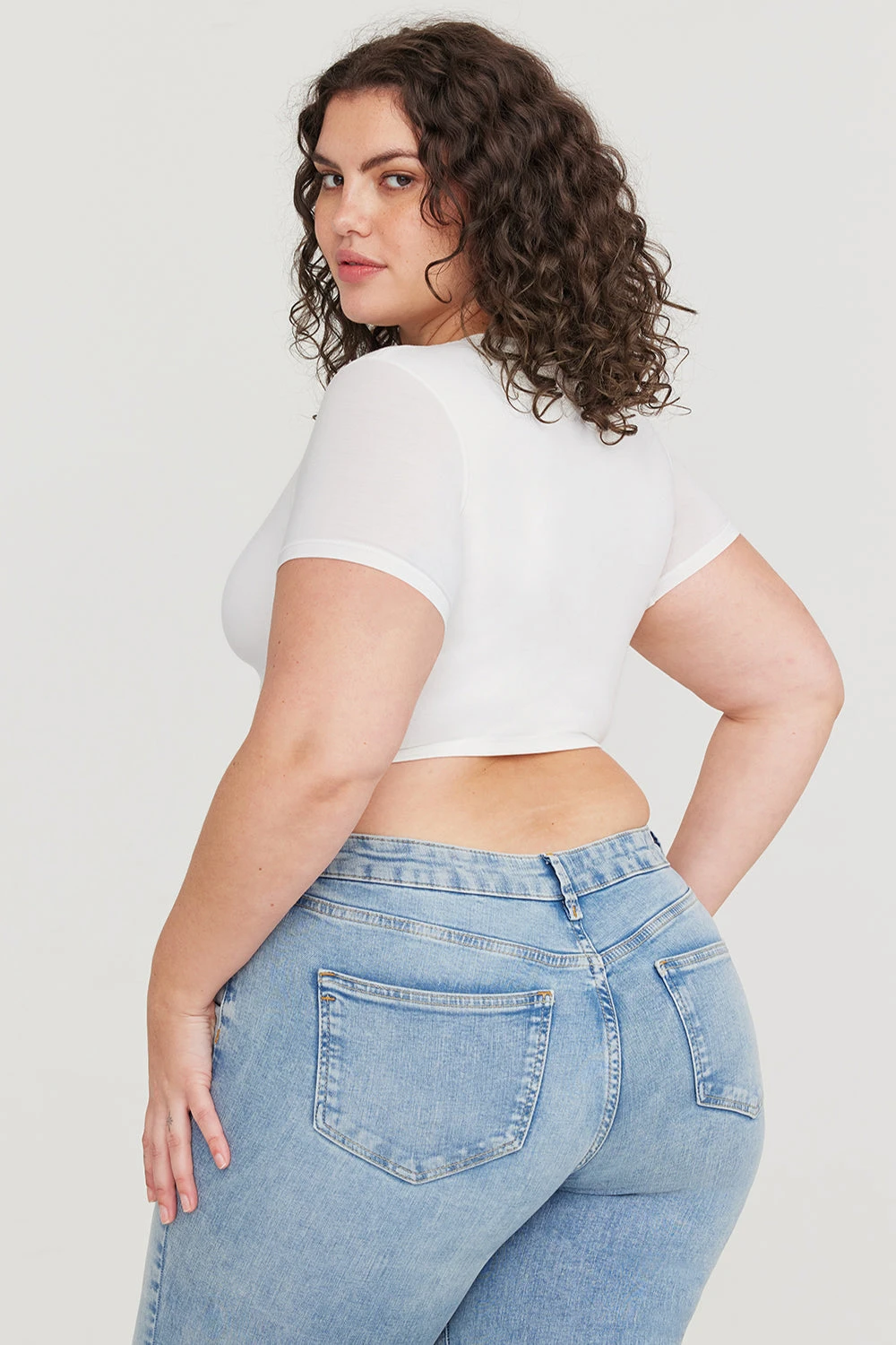 All the style you loved from our original 365 high crew neck t-shirt with a flattering cropped look. Double layered for extra comfort and smoothing effect on curves, this form fitting t-shirt is set to become your new staple. Cleverly crafted from LENZING® Modal for twice the softness of cotton, enhanced breathability, and long-lasting quality. Perfectly cropped to be worn with high waist leggings, trousers and skirts.