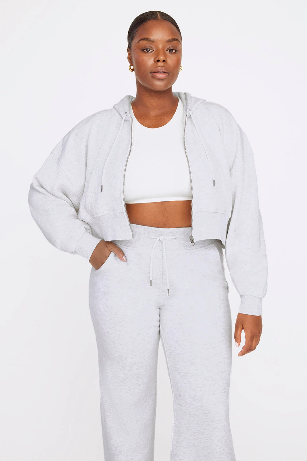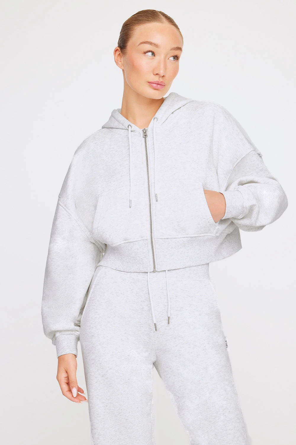You’ve worked too damn hard on your booty pump to cover it up. The boxy fit gives a cute oversized look and the drop shoulder and batwing sleeves add body to achieve this super chilled, effortless, but flattering look. This hoodie is the perfect combo of cosy and lightweight, made with a blend of organic cotton, recycled polyester and elastane, with a brushed lining that isn’t too heavy for a sweaty gym sesh. The ribbed waist has a curved hem and can also be tucked into your sports bra (pump cover style!) to give an even more cropped style for whenever you feeling that. You can also show off your sports bra as much or as little as you want with a full zip down the front. We recommend styling with your favourite leggings – especially Sculpt Seamless!