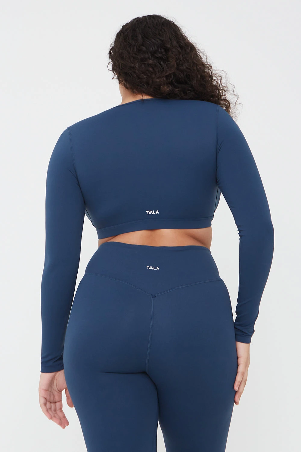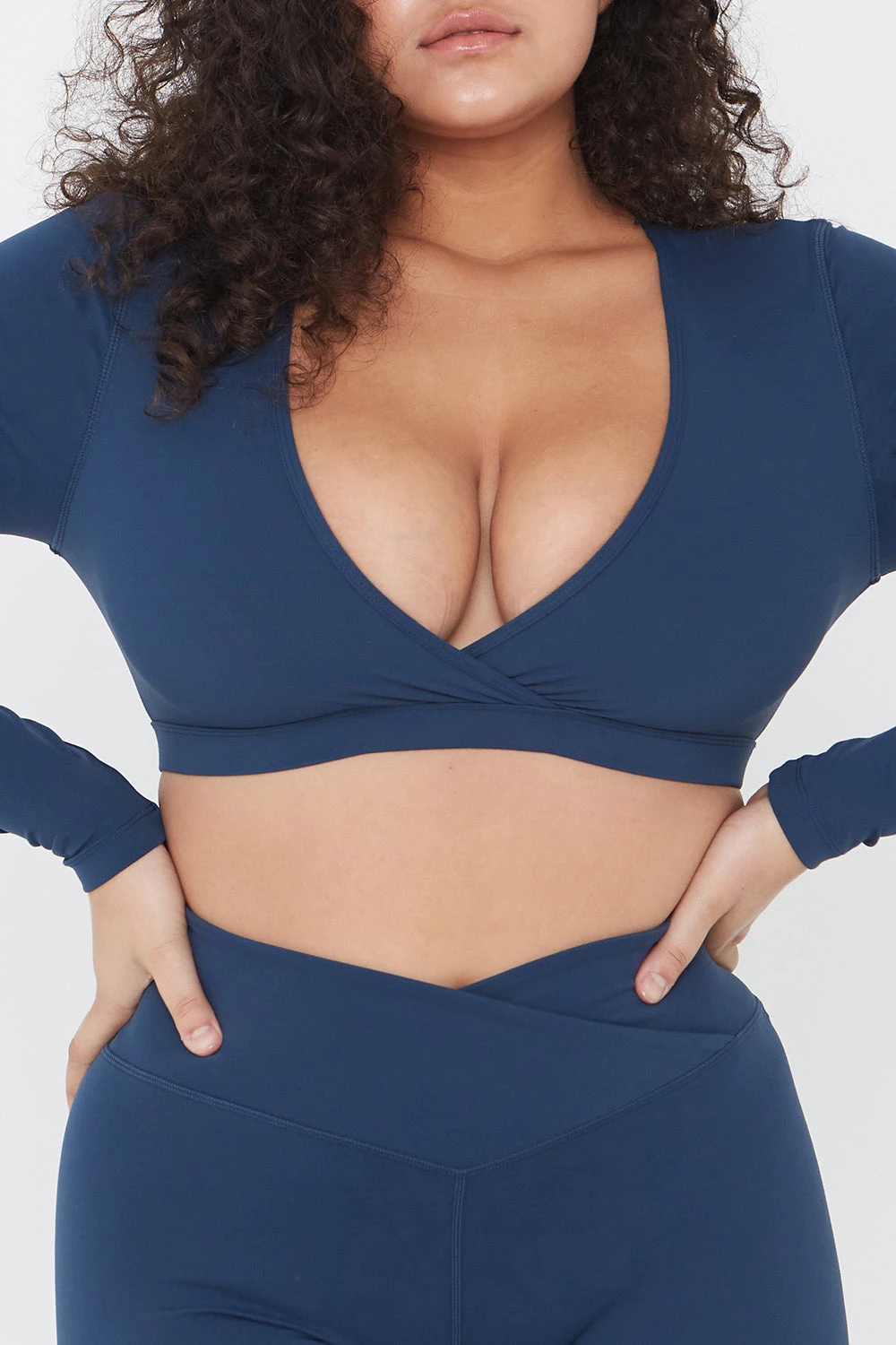 You loved our DayFlex V Neck Sports Bra – now introducing her Long Sleeve sister. The same great flattering wrap-detail neckline, double layered fabric and soft supportive band below the bust, you WILL be the girl everyone is watching in pilates in this top.Â