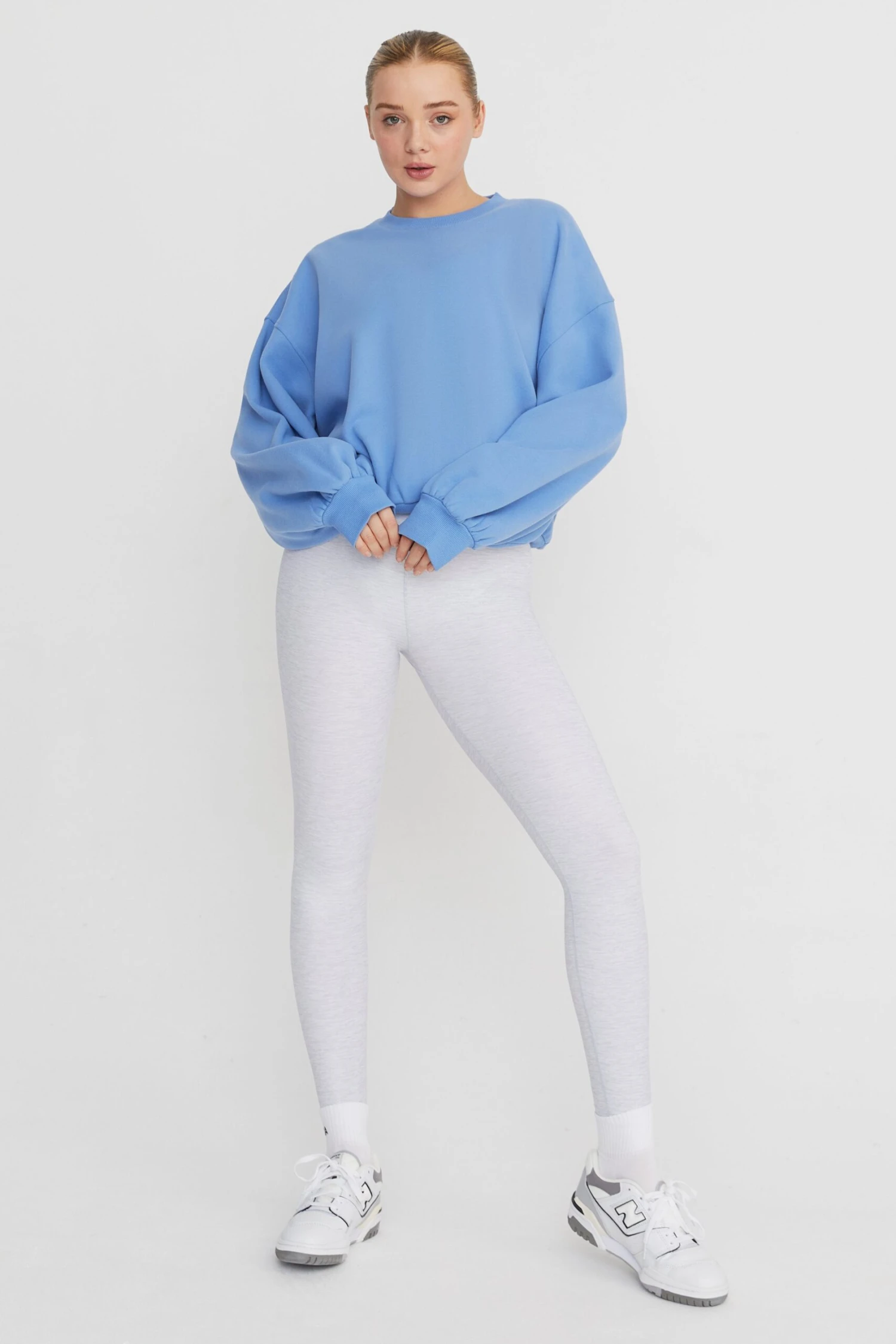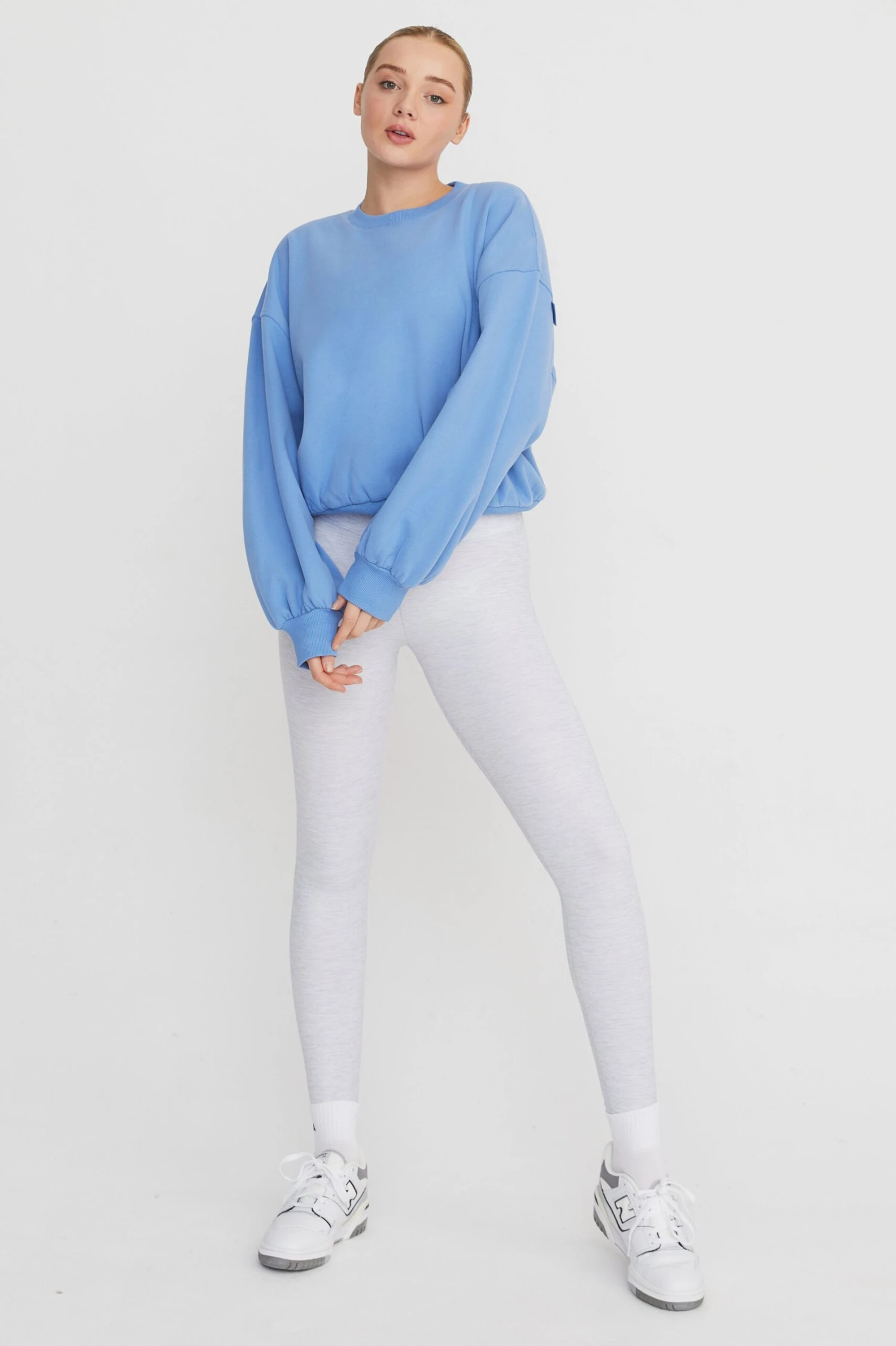 When it came to this sweatshirt, we put our product team to the task: to make the comfiest sweatshirt possible, but ensure you can walk into the office and get compliments, not reprimands. In other words, make this the most luxurious sweatshirt ever. They added just the right amount of curve to the side seams to create a slight drape and flattering fit and created sleeves with voluminous tucks of fabric that create the perfect flowy look. By doing this in the ribbed cuff, it created the most beautiful volume – hello blouson. Hello ROMANCE.