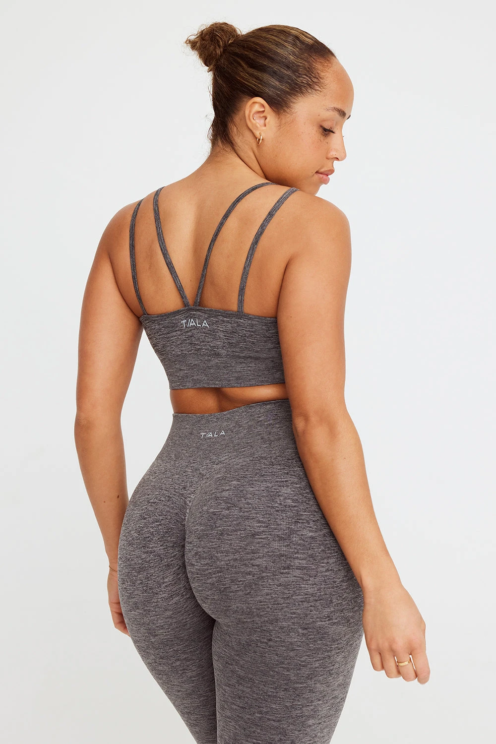 A cute and delicate sports bra that still manages to support you through your workouts. With a distinct multi-strap design and crafted from super soft, lightweight seamless fabrics for ultimate comfort this is bound to become your favourite sports bra.Â