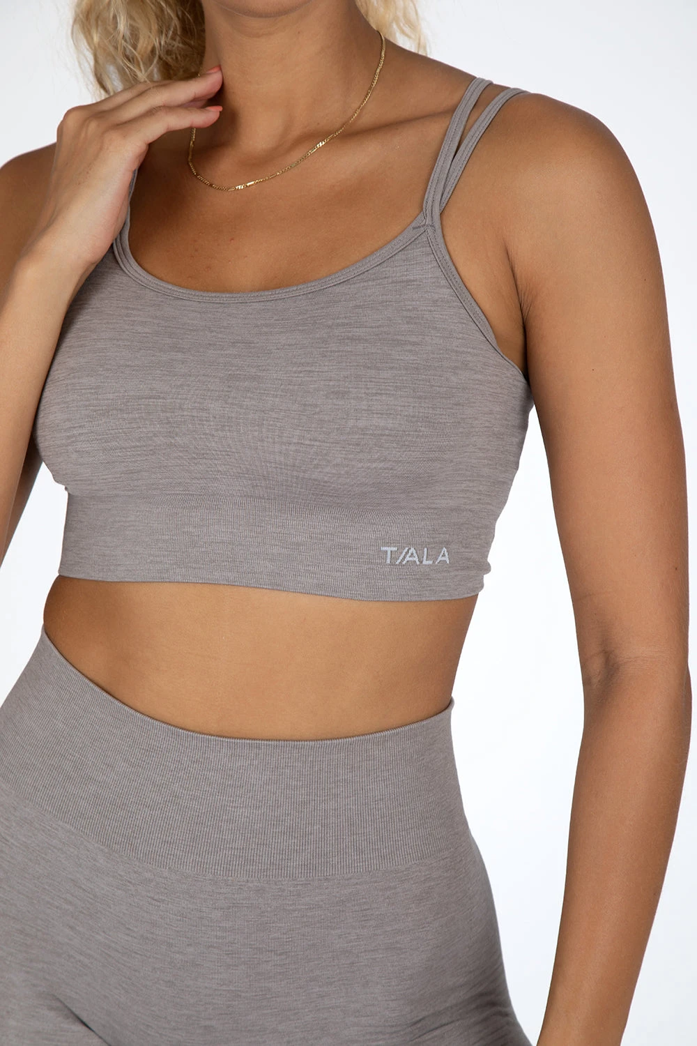 A cute and delicate sports bra that still manages to support you through your workouts. With a distinct multi-strap design and crafted from super soft, lightweight seamless fabrics for ultimate comfort this is bound to become your favourite sports bra.Â
