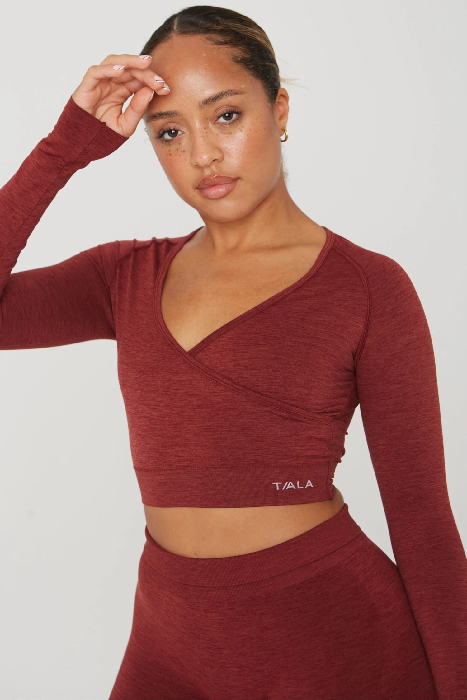 The perfect flattering wrap long-sleeve, cropped design to take you to the gym and beyond. Pair with leggings for the ultimate gym combo or with jeans to add athleisure-glam to any outfit.Â