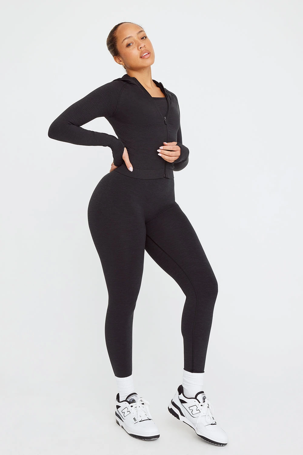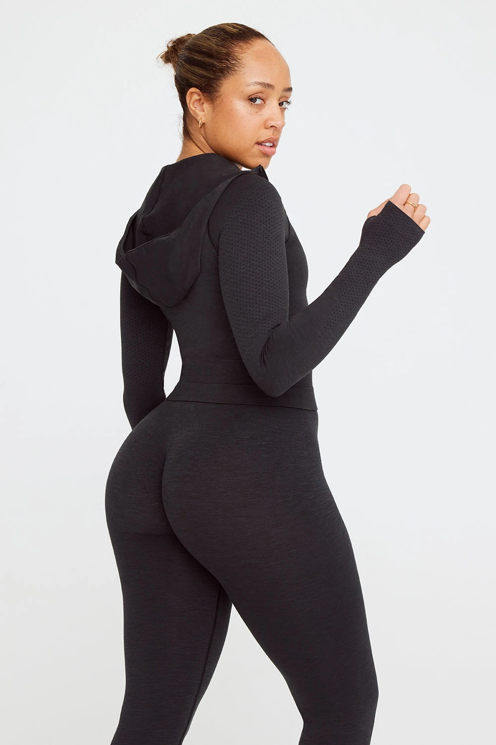 Inspired by your relentless demands for a re-launch of our iconic, sell-out Eden top, we took everything you loved and made it Sculpt-worthy: a figure-hugging cut, contouring details, and seamless, pocketless design, all in the breathable, lightweight and recycled fabric you know and love. Our signature sculpting effect, now in a zip through hoodie jacket.
