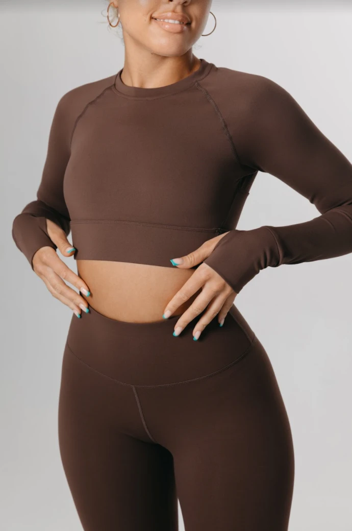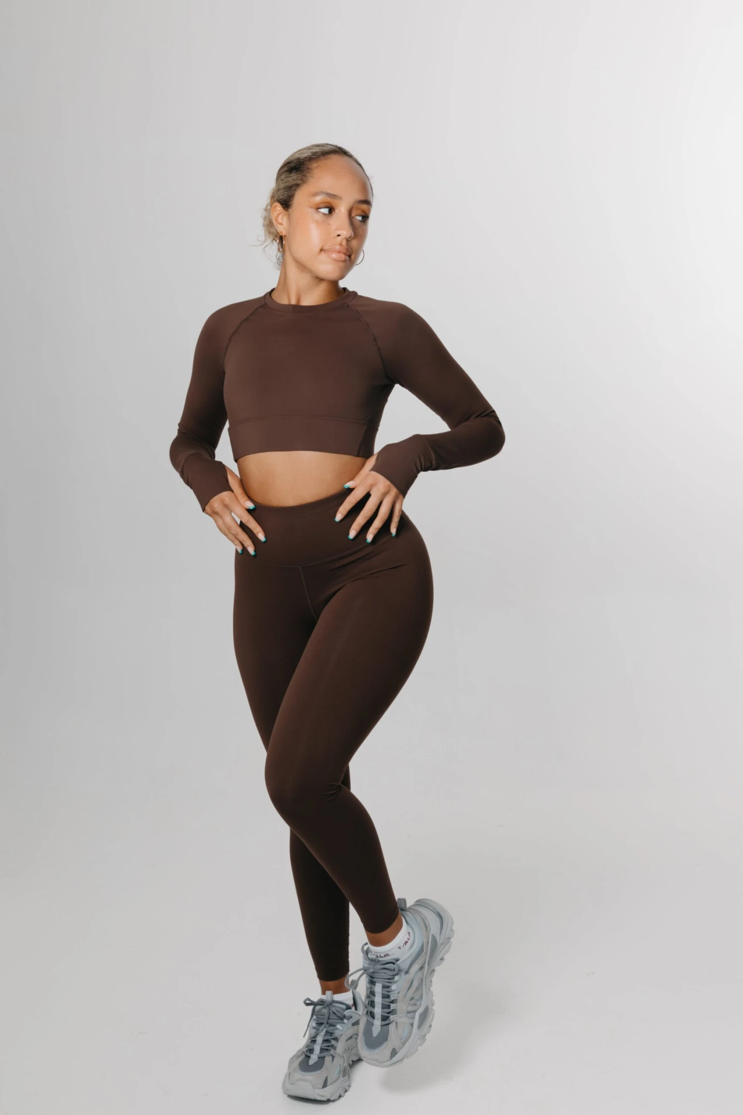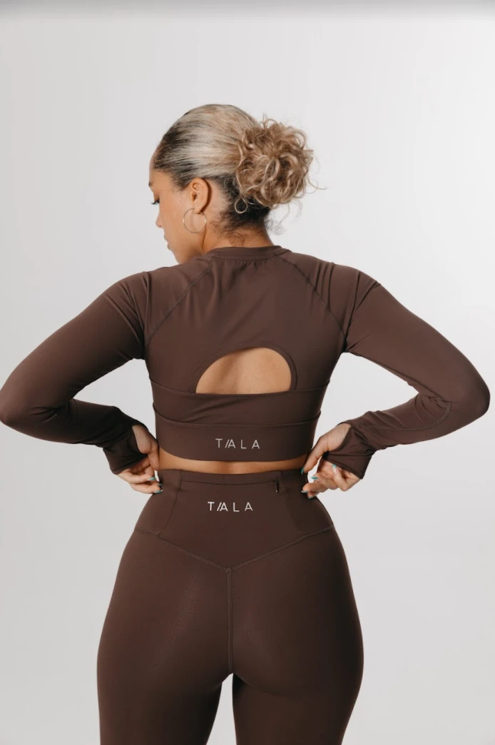 Tala SKINLUXE CROP KEYHOLE LONG SLEEVE TOP – BROWN