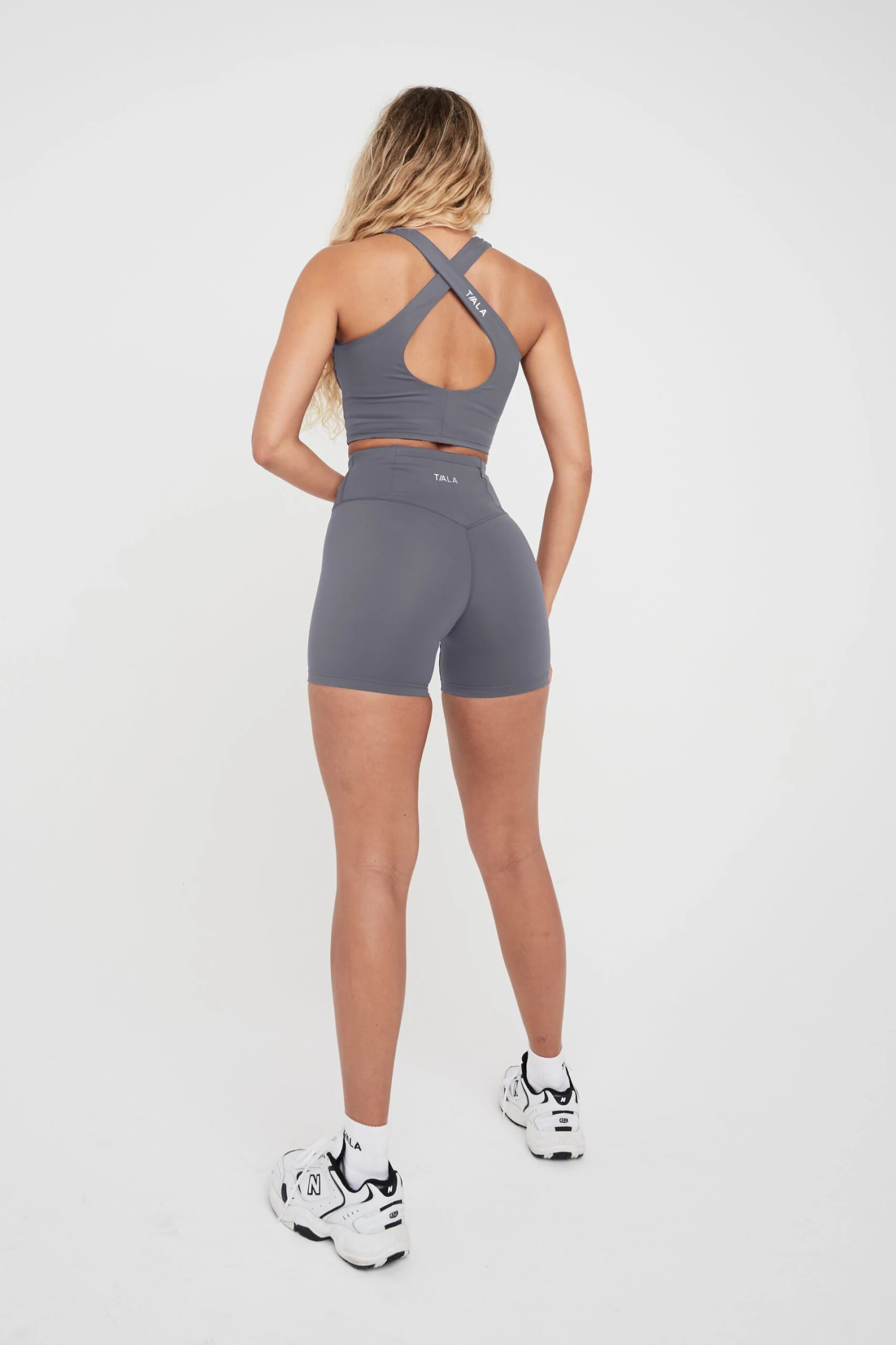 Supportive, sculpting and super stylish, this high neck bra with cross-back detailing will help you get the most out of your workouts. The longline design means it can also be worn as a crop top with hidden support that will hold you in place as you move.Â
