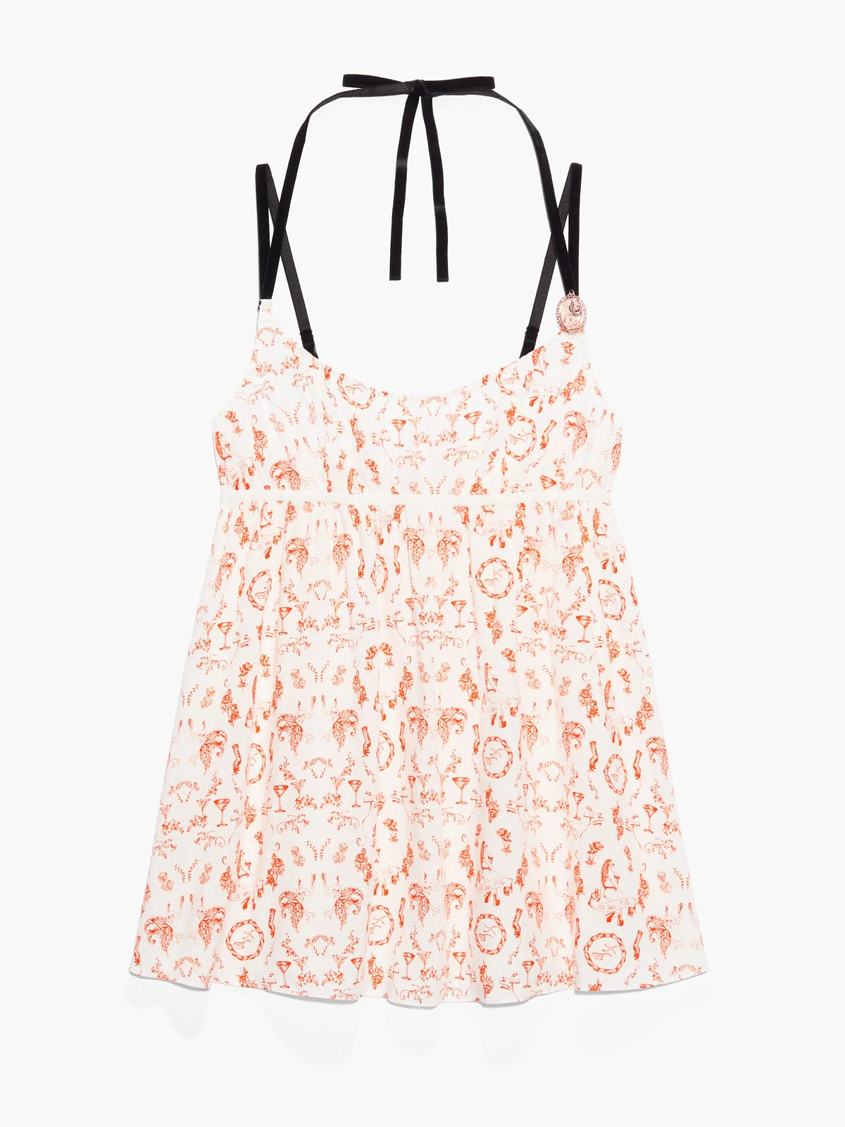 The perfect classic bedroom look: Meet our Underpinnings Babydoll Slip, featuring an empire waist, a double-strap halter neckline, and rose gold-tone hardware.