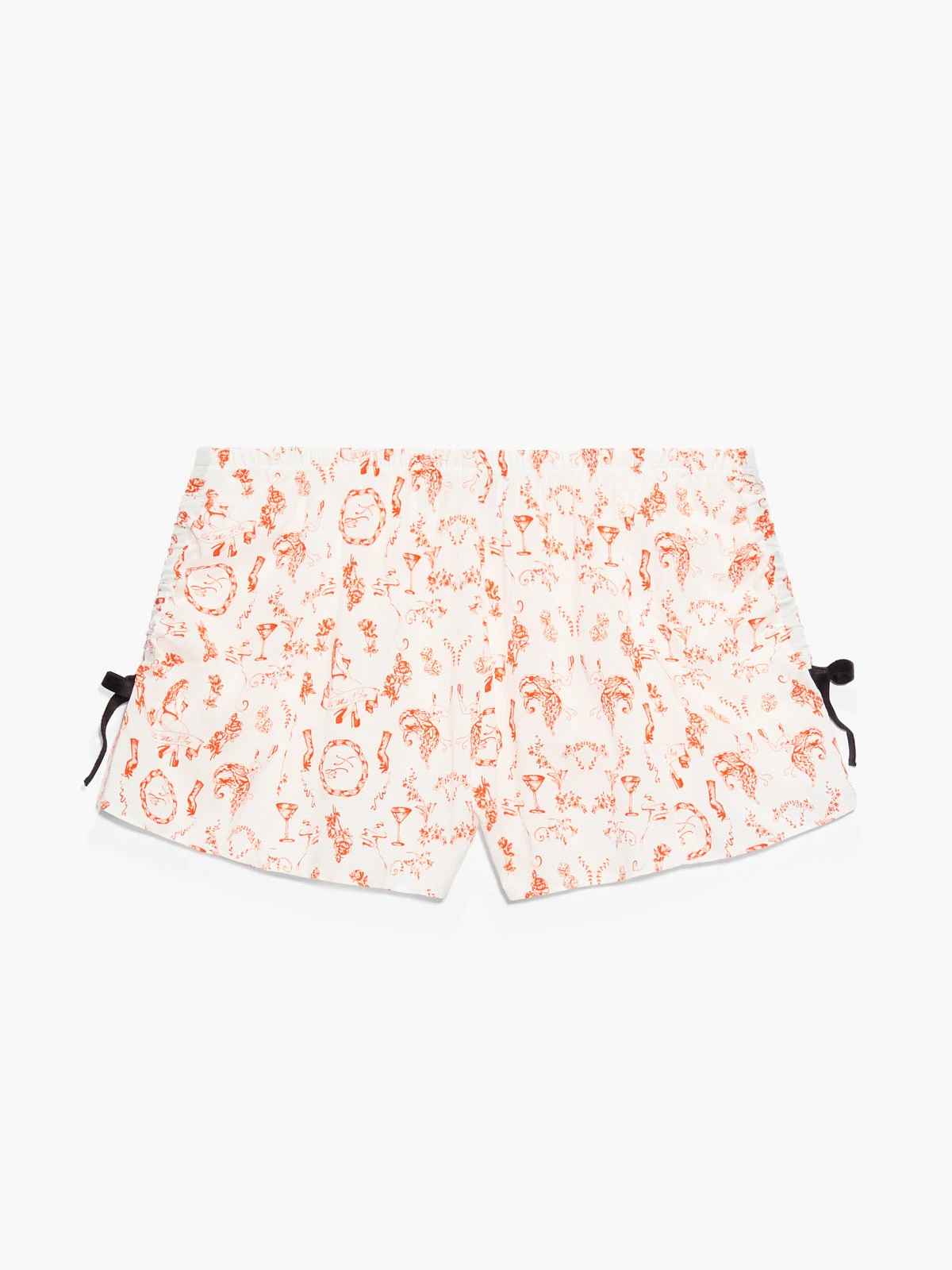 The perfect classic bedroom look: Meet our Underpinnings Sleep Shorts, featuring an A-line cut, baby ruffle at front, and ribbon-tie detailing on the sides.