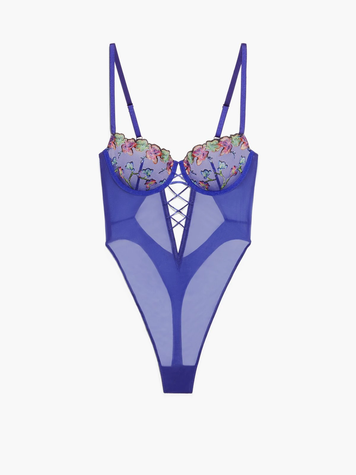 Run wild and free. Featuring orchid-print floral embroidery inspired by the Wild Wild West, our Western Wildflower Teddy has a high leg, tricot body, a lace-up cutout, and adjustable straps.